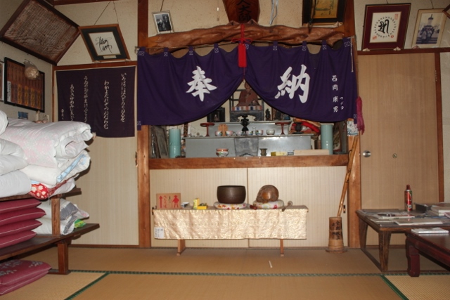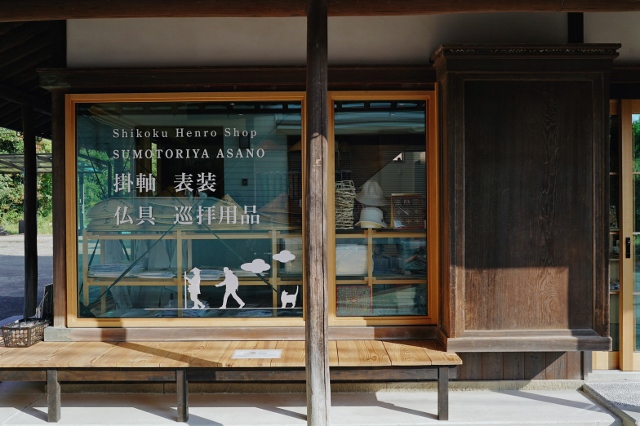 スモトリ堂浅野総本店切幡寺への333階段は四国遍路道最初の難所?。ここに手荷物を預け遍路ができるよ。10番切幡寺麓にある遍路用品販売店。とある歩き遍路は、よい品物を安価で購入できるのでは?。 店主は英語に堪能。 お知らせ─