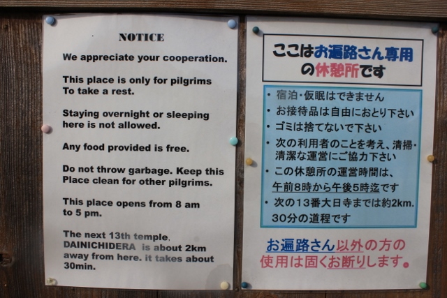 おやすみなさい亭休憩所13番大日寺手前約2㎞にある休憩所です。お知らせ─