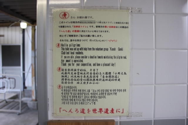 トイレ情報四国遍路道は延べ1,400㎞。このへんろ道の約8割は生活道でもある。生活道沿いにはコンビニエンスストア、スーパマーケット等が有る。これらのお店にはトイレがある。また、街中には公衆便所等もある。歩き遍路をしていてトイレに不便さはない。 一方、海岸線で集落が点在するへんろ道、山間地で集落が点在するへんろ道、山岳へんろ道は約2割ある。 この遍路道沿いにはコンビニエンスストア等はほとんどない。また公衆便所も少ない。10㎞以上にわたりトイレが無い場所も多くある。注意が必要である。 日本のトイレは99%無料である。市街地のコンビニエンスストアトイレは清潔であり無料である。しかし、公衆トイレではない。 コンビニエンスストア等のトイレを公衆便所として使用するのは、マナー違反です。お遍路の皆さん、トイレを使用した時は、必ず飲み物、食べ物を購入による謝礼をすること。 郊外、山岳へんろ道のトイレのほとんどが公衆トイレである。旧式で不衛生なトイレが多く目をそむけたくなるようなトイレもある。 地元住民の支援でトイレを清潔に保たれていますが、本来、これらのトイレ管理責任者は使用するあなたです。使った後は清掃してください。 へんろ道沿いのトイレ情報発信はどのようにすべきか?。ネット上でトイレマップを見かける。私は、どうもしっくりこない。 とある歩き遍路は、トイレ過疎地の環境を紹介することで皆様の悩みを解消できたらと思っている. 情報発信は、”遍路施設ドットコム”を活用し発信していきます。なお、トイレに不安を持つ女性は、簡易携帯トイレを携行するのも対策の一つと考えます。 トイレ課題の事例 ❖トイレ情報1 メインの山岳へんろ道のトイレは設置されているが数が少ない。また、旧式で清掃が行き届いていない。トイレに不安のある方は簡易トイレの携行も選択肢の一つである。トイレ管理責任者は自分であることをし使用後は清潔にすること。 別格ルートの山岳へんろ道はトイレが整備されていないので注意すること。 ❖トイレ情報2 11番藤井寺(39㎞)- 12番焼山寺-玉ヶ峠経由 -13番大日寺付近(65㎞) 公衆トイレは点在するが、旧式トイレで清掃が行き届いていない。トイレ紙も準備が必要?。 ❖トイレ情報3 徳島高知県境付近(195㎞)- 24番最御岬寺手前10㎞(220㎞) この区間公衆トイレ数か所。旧式で清掃が行き届いていない。トイレ紙も準備が必要?。トイレ過疎地 しかし、ここから(220㎞)羽根岬(253㎞)までは、公衆トイレが整備されている。本当にすばらしい。 ❖トイレ情報4 40番観自在寺(595㎞) – 柏坂登り口(605㎞) – 柏坂鴨田(615㎞) この区間もトイレ要注意 ❖トイレ情報5 内子町突合(708㎞) – 久万高原町(727㎞) この区間公衆トイレが少ない。 ❖トイレ情報6 65番三角寺(934㎞)- 66番雲辺寺 – 67番大興寺(960㎞) この区間公衆トイレ数か所。旧式で清掃が行き届いていない。最大のトイレ過疎地 小屋・施設詳細─
