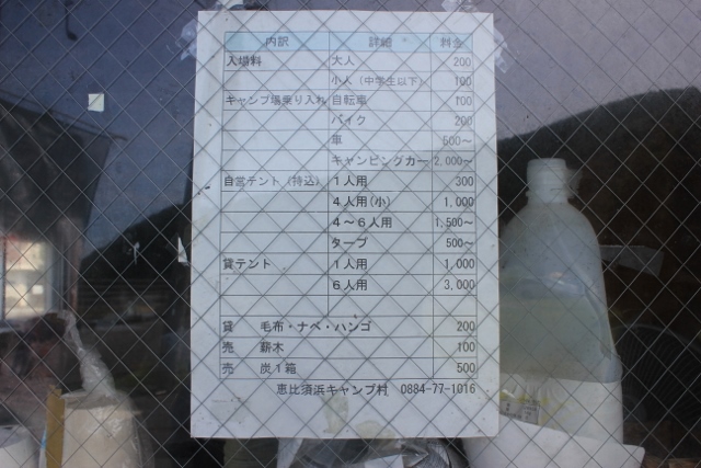 入田キャンプ場使用料金は1,X00円。小屋・施設詳細─