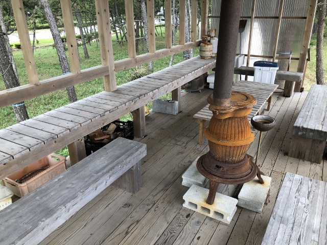 農機具店小屋休憩所には水道、トイレがあります。小屋・施設詳細─