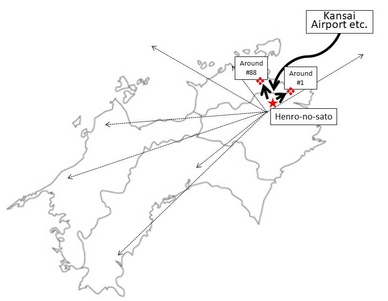 ※累積距離は、第1番札所霊山寺からの最短ルート上の換算距離になります。