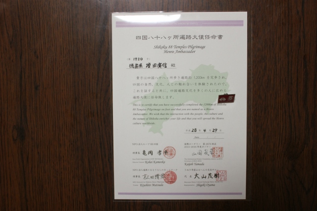 前山オヘンロサロン歩き遍路の皆さん必ず立ち寄ってください。結願したお遍路さんは、結願バッジと完歩証明書が授与されます。 営業時間注意:8:00-16:00 お知らせ─
