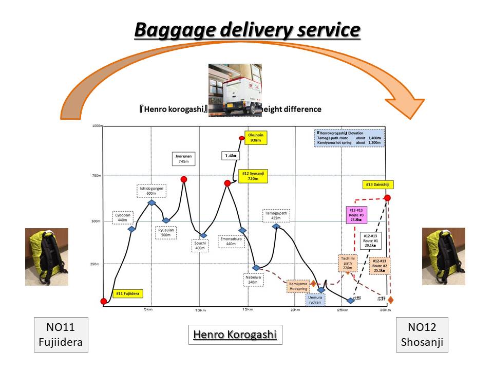 手荷物配送サービス四国遍路道最難関の遍路転がし区間の手荷物配送サービスは次のとおりです。手荷物有料配送サービス ①サービス提供エリア 11番藤井寺周辺宿-17番井戸寺周辺宿 ②料金 1区間:1,500円(藤井寺周辺宿-焼山寺麓鍋岩周辺) 2区間2,500円(1区間:藤井寺周辺宿-焼山寺麓鍋岩周辺 2区間: 焼山寺麓鍋岩周辺宿—17番付近宿 自転車有料配送サービス 自転車でお遍路をしている皆さんへ。素敵なこの区間を歩き遍路に 挑戦してみませんか? ①サービス提供エリア 藤井寺周辺宿-焼山寺麓鍋岩周辺宿 ②料金 2,500円(自転車と手荷物) お問い合わせ 携帯電話:080-2989-8070 Email:oyadof11@gmail.com http://ohenro.jp/blog/arukihenro/2023/12/22/%e7%84%bc%e5%b1%b1%e5%af%ba%e9%81%8d%e8%b7%af%e8%bb%a2%e3%81%8c%e3%81%97%e3%80%80%e6%89%8b%e8%8d%b7%e7%89%a9%e9%85%8d%e9%80%81%e3%82%b5%e3%83%bc%e3%83%93%e3%82%b9%e9%96%8b%e5%a7%8b/ 小屋・施設詳細─